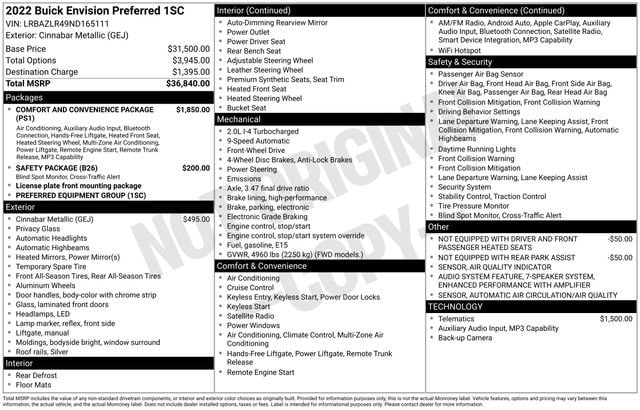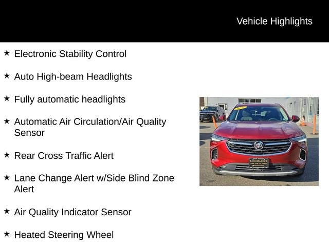 Certified. Cinnabar Metallic 2022 Buick Envision Preferred 4D Sport Utility FWD 9-Speed Automatic 2.0L Turbocharged 24/31 City/Highway MPG