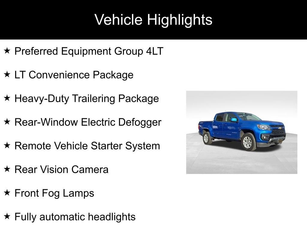 Bright Blue Metallic 2022 Chevrolet Colorado LT 4D Crew Cab 4WD 8-Speed Automatic V6