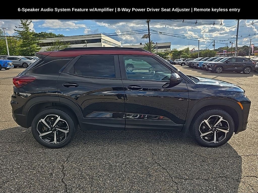 Schumacher Chevrolet of Clifton is proud to offer this outstanding 2023 Chevrolet TrailBlazer RS in Mosaic Black Metallic Beautifully equipped with Preferred Equipment Group 1RS (Heated Steering Wheel), 2-Way Adjustable Front Head Restraints, 2-Way Power Driver Lumbar Seat Adjuster, 6-Speaker Audio System Feature w/Amplifier, 7" Diagonal Color Touchscreen, 8-Way Power Driver Seat Adjuster, Heated door mirrors, Heated Driver & Front Passenger Seats, Power driver seat, Power windows, Radio: Chevrolet Infotainment 3 System, Remote keyless entry, Ride & Handling Suspension, Security system, SiriusXM Radio, Steering wheel mounted audio controls, Traction control, Wheels: 18" High Gloss Black Machined Aluminum, Wireless Apple CarPlay/Android Auto, 3.17 Axle Ratio, 4-Way Manual Front Passenger Seat Adjuster, 4-Wheel Disc Brakes, 6 Speakers, ABS brakes, Air Conditioning, Alloy wheels, AM/FM radio: SiriusXM, Auto High-beam Headlights, Brake assist, Bumpers: body-color, Cloth w/Leatherette Seat Trim, Compass, Crimson Metallic Two-Tone Roof, Delay-off headlights, Driver door bin, Driver vanity mirror, Dual front impact airbags, Dual front side impact airbags, Electronic Stability Control, Emergency communication system: OnStar and Chevrolet connected services capable, Exterior Parking Camera Rear, Flat-Folding Front Passenger Seatback, Front anti-roll bar, Front Bucket Seats, Front Center Armrest, Front fog lights, Front License Plate Bracket, Front reading lights, Front wheel independent suspension, Fully automatic headlights, Heated front seats, Heated steering wheel, Illuminated entry, Knee airbag, Leather Shift Knob, Leather steering wheel, Low tire pressure warning, Occupant sensing airbag, Overhead airbag, Overhead console, Panic alarm, Passenger door bin, Passenger vanity mirror, Power door mirrors, Power steering, Radio data system, Rear seat center armrest, Rear side impact airbag, Rear window defroster, Rear window wiper, Speed control, Split folding rear seat, Spoiler, Tachometer, Telescoping steering wheel, Tilt steering wheel, Trip computer, and Variably intermittent wipers!