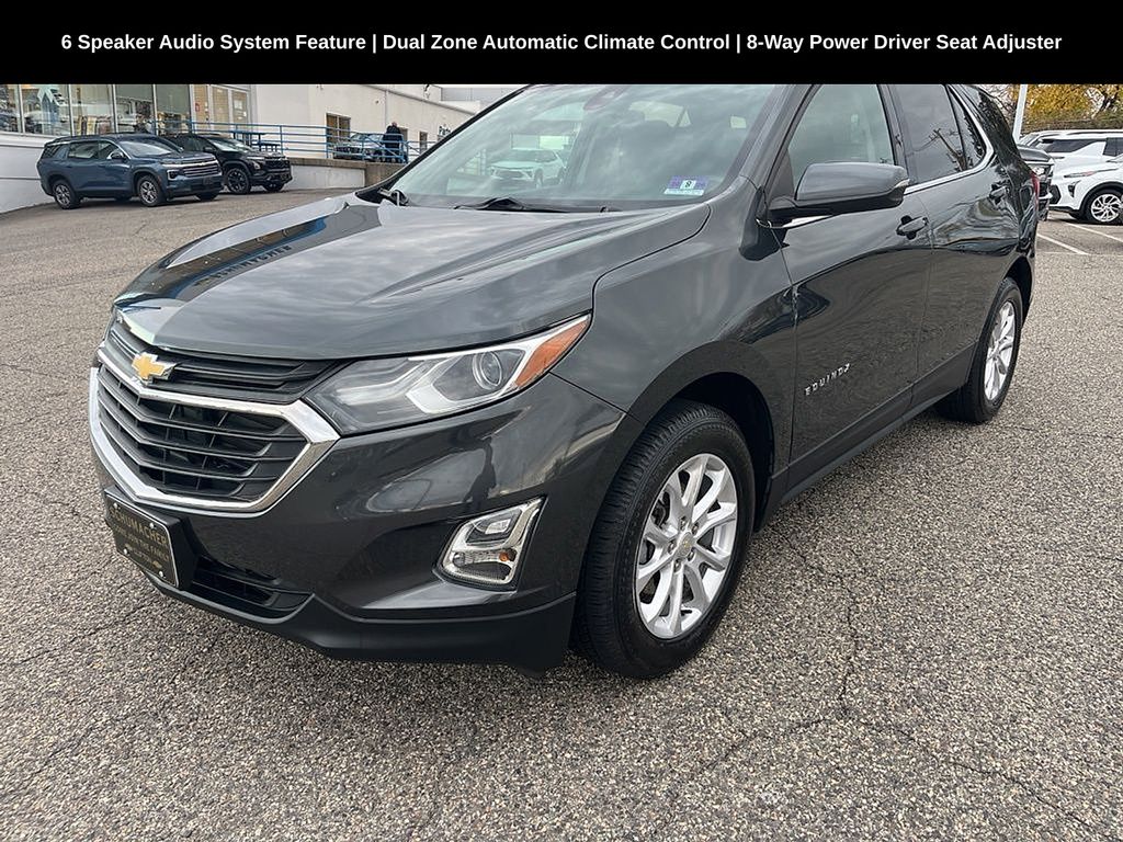 Schumacher Chevrolet of Clifton is excited to offer this wonderful-looking 2019 Chevrolet Equinox LT in Nightfall Gray Metallic Beautifully equipped with Driver Confidence Package (Lane Change Alert w/Side Blind Zone Alert, Outside Heated Power-Adjustable Mirrors, Rear Cross Traffic Alert, and Rear Park Assist w/Audible Warning), Driver Confidence Plus Package (3-Spoke Leather-Wrapped Steering Wheel, Lane Keep Assist w/Lane Departure Warning, Following Distance Indicator, Forward Collision Alert, Front Pedestrian Braking, IntelliBeam Auto High Beam Headlamp Control, and Low Speed Forward Automatic Braking), Driver Convenience Package (Dual Zone Automatic Climate Control, Heated Driver & Front Passenger Seats, Leather-Wrapped Shift Lever, Rear Power Liftgate, Remote Vehicle Starter System, and Universal Home Remote), Preferred Equipment Group 2FL, 2 Rear USB Charging-Only Ports, 2 USB Ports & Auxiliary Input Jack, 6 Speaker Audio System Feature, 8-Way Power Driver Seat Adjuster, Alloy wheels, Apple CarPlay/Android Auto, Bluetooth® For Phone, Heated door mirrors, Panic alarm, Power door mirrors, Power windows, Radio: Chevrolet Infotainment 3 System w/AM/FM, Remote keyless entry, SiriusXM Radio, 17" Aluminum Wheels, 2-Way Power Driver Lumbar Control Seat Adjuster, 3.50 Final Drive Axle Ratio, 4-Wheel Disc Brakes, 6 Speakers, ABS brakes, Air Conditioning, AM/FM radio: SiriusXM, Auto High-beam Headlights, Brake assist, Bumpers: body-color, Compass, Delay-off headlights, Driver door bin, Driver vanity mirror, Dual front impact airbags, Dual front side impact airbags, Electronic Stability Control, Emergency communication system: OnStar and Chevrolet connected services capable, Four wheel independent suspension, Front anti-roll bar, Front Bucket Seats, Front Center Armrest, Front Passenger 4-Way Manual Seat Adjuster, Front reading lights, Fully automatic headlights, High-Intensity Discharge Headlights, Illuminated entry, Low tire pressure warning, Occupant sensing airbag, Outside temperature display, Overhead airbag, Overhead console, Passenger door bin, Passenger vanity mirror, Power driver seat, Power steering, Premium audio system: Chevrolet MyLink, Premium Cloth Seat Trim, Radio data system, Rear anti-roll bar, Rear reading lights, Rear seat center armrest, Rear window defroster, Rear window wiper, Security system, Speed control, Speed-sensing steering, Split folding rear seat, Spoiler, Steering wheel mounted audio controls, Tachometer, Telescoping steering wheel, Tilt steering wheel, Traction control, Trip computer, Turn signal indicator mirrors, and Variably intermittent wipers!