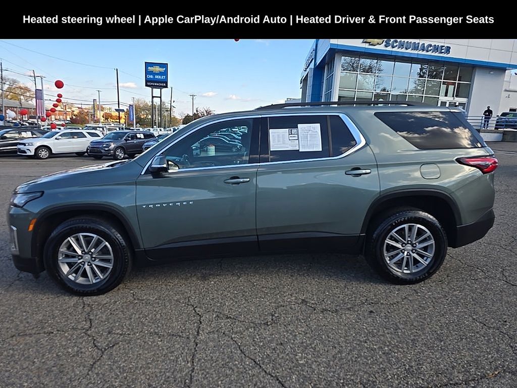 Schumacher Chevrolet of Clifton is honored to offer this fantastic 2023 Chevrolet Traverse LT Leather in Silver Sage Metallic Beautifully equipped with Preferred Equipment Group 3LT (Heated Driver & Front Passenger Seats), Front License Plate Bracket Mounting Package, 4-Wheel Disc Brakes, 6-Speaker Audio System Feature, 8-Way Power Driver Seat Adjuster, Air Conditioning, Apple CarPlay/Android Auto, Auto High-beam Headlights, Exterior Parking Camera Rear, Heated door mirrors, Heated steering wheel, Power door mirrors, Power Liftgate, Power windows, Premium audio system: Chevrolet Infotainment 3 Plus, Radio: Chevrolet Infotainment 3 Plus System, Remote keyless entry, Security system, SiriusXM w/360L, Speed control, Steering wheel mounted audio controls, Wheels: 18" Bright Silver-Painted Aluminum, 3.49 Axle Ratio, 3rd row seats: split-bench, 6 Speakers, 6-Way Power Front Passenger Seat, ABS brakes, Alloy wheels, AM/FM radio: SiriusXM with 360L, Automatic temperature control, Black Roof Rails, Brake assist, Bumpers: body-color, Compass, Delay-off headlights, Driver door bin, Driver vanity mirror, Dual front impact airbags, Dual front side impact airbags, Electronic Stability Control, Emergency communication system, Four wheel independent suspension, Front anti-roll bar, Front Bucket Seats, Front Center Armrest, Front dual zone A/C, Front Passenger 2-Way Power Lumbar, Front reading lights, Fully automatic headlights, Garage door transmitter, Heated front seats, Illuminated entry, Leather steering wheel, Leather-Appointed Seat Trim, Low tire pressure warning, Not Equipped w/Rear Park Assist (060), Occupant sensing airbag, Outside temperature display, Overhead airbag, Overhead console, Panic alarm, Passenger door bin, Passenger vanity mirror, Power Driver Lumbar Control, Power driver seat, Power passenger seat, Power steering, Radio data system, Rear air conditioning, Rear anti-roll bar, Rear reading lights, Rear window defroster, Rear window wiper, Speed-sensing steering, Spoiler, Tachometer, Telescoping steering wheel, Tilt steering wheel, Traction control, Trip computer, Turn signal indicator mirrors, Variably intermittent wipers, and Voltmeter!