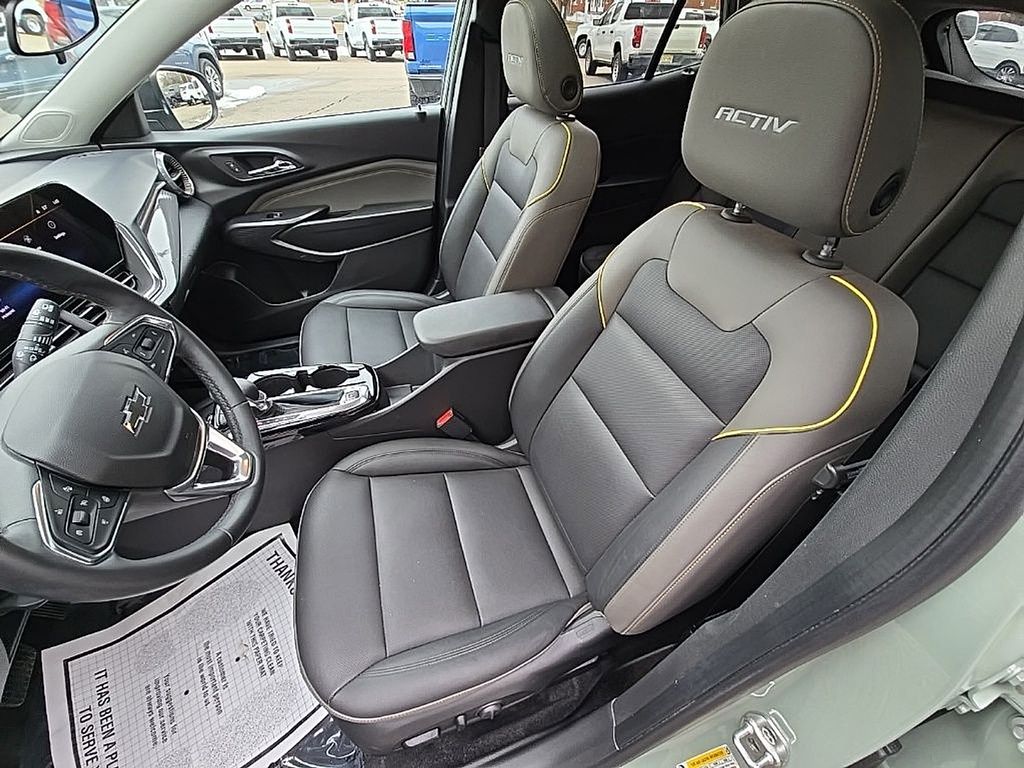 Schumacher Chevrolet of Clifton is delighted to offer this attractive 2024 Chevrolet Trax ACTIV in Cacti Green Beautifully equipped with Driver Confidence Package (Adaptive Cruise Control, Lane Change Alert w/Side Blind Zone Alert, Rear Cross-Traffic Alert, and Rear Park Assist), Sunroof Package (Power Sliding Glass Sunroof w/Manual Shade and Wireless Charging), License Plate Front Mounting Package, Preferred Equipment Group 1SA, 4-Way Manual Front Passenger Seat Adjuster, 6-Speaker Audio System Feature, 8-Way Power Driver Seat Adjuster, Air Conditioning, Auto High-beam Headlights, Front wheel independent suspension, Heated door mirrors, Heated front seats, Heated steering wheel, Power windows, Remote keyless entry, Security system, SiriusXM, Spoiler, Steering wheel mounted audio controls, Traction control, Wheels: 18" Black-Painted Aluminum, 2-Way Adjustable Front Head Restraints, 2-Way Power Driver Lumbar Seat Adjuster, 3.50 Final Drive Axle Ratio, 4-Wheel Disc Brakes, 6 Speakers, ABS brakes, Alloy wheels, AM/FM radio: SiriusXM, Automatic temperature control, Brake assist, Bumpers: body-color, Compass, Delay-off headlights, Driver door bin, Driver vanity mirror, Dual front impact airbags, Dual front side impact airbags, Electronic Stability Control, Emergency communication system: OnStar and Chevrolet connected services capable, Evotex Seat Trim, Exterior Parking Camera Rear, Front anti-roll bar, Front Bucket Seats, Front Center Armrest, Front reading lights, Fully automatic headlights, Heated Driver & Front Passenger Seats, Illuminated entry, Low tire pressure warning, Occupant sensing airbag, Outside temperature display, Overhead airbag, Overhead console, Panic alarm, Passenger door bin, Passenger vanity mirror, Power door mirrors, Power driver seat, Power steering, Premium audio system: Chevrolet Infotainment 3, Radio data system, Radio: Audio System w/AM/FM, Rear Park Assist (DISC), Rear window defroster, Rear window wiper, Speed control, Split folding rear seat, Tachometer, Telescoping steering wheel, Tilt steering wheel, Trip computer, and Variably intermittent wipers!