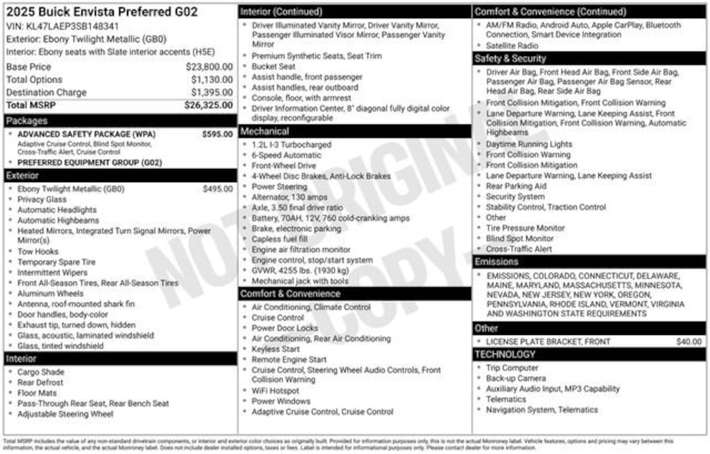 - $250 Purchase Allowance for Current Eligible Non-GM Owners and Lessees on this 2025 Buick Envista modelDetails