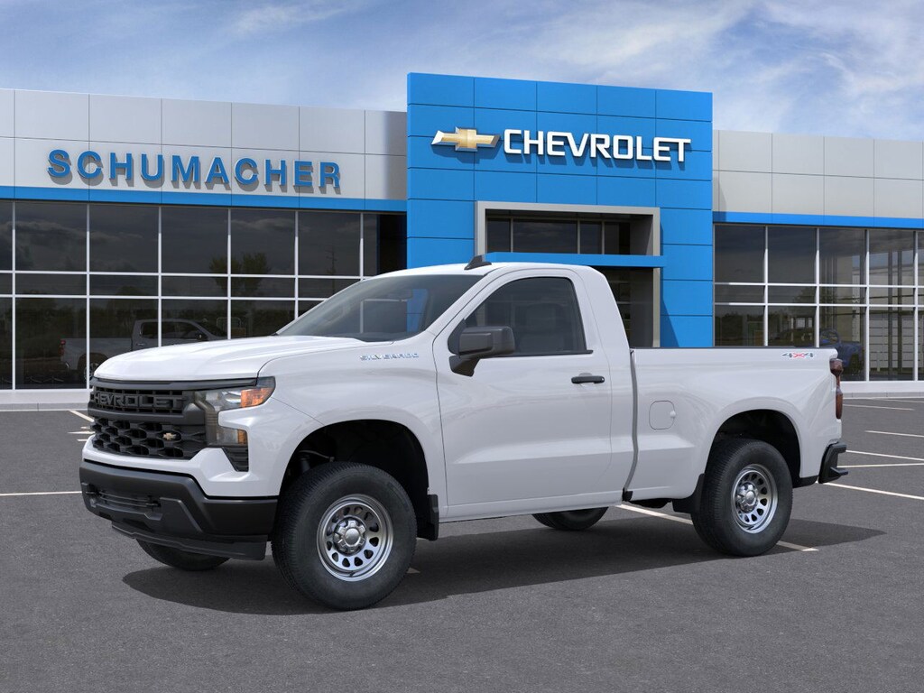 Schumacher Chevrolet of Clifton is proud to offer this gorgeous-looking 2024 Chevrolet Silverado 1500 WT in Summit White Beautifully equipped with Preferred Equipment Group 1WT (3.5 Monochromatic Display Driver Info Center, Black (Semi-Gloss) Front Bumper, Black (Semi-Gloss) Rear Bumper, Bluetooth® For Phone, Chevrolet Connected Access Capable, Electrical Steering Column Lock, Front Frame-Mounted Black Recovery Hooks, HD Rear Vision Camera, Heated Power-Adjustable Outside Mirrors, Inside Rear-View Mirror w/Tilt, Locking Tailgate, Manual Tailgate Function w/No EZ Lift, Manual Tilt Wheel Steering Column, OnStar & Chevrolet Connected Services Capable, Power Front Windows w/Driver Express Up/Down, Remote Keyless Entry, Rubberized-Vinyl Floor Covering, SiriusXM Delete, Solar Absorbing Tinted Glass, Standard Tailgate, and Wi-Fi Hot Spot Capable), Standard Suspension Package, Trailering Package (Hitch Guidance), WT Convenience Package (Deep-Tinted Glass, Electric Rear-Window Defogger, and Electronic Cruise Control), WT Value Package, 2 Speakers, 2-Speaker Audio System, 220 Amp Alternator, 3.42 Rear Axle Ratio, 4-Wheel Disc Brakes, 40/20/40 Front Split Bench Seat, ABS brakes, Air Conditioning, Auto High-beam Headlights, Auto-Locking Rear Differential, Automatic Emergency Braking, Brake assist, Chevytec Spray-On Black Bedliner, Compass, Delay-off headlights, Driver door bin, Dual front impact airbags, Dual front side impact airbags, Electronic Stability Control, Following Distance Indicator, Forward Collision Alert, Front anti-roll bar, Front Center Armrest w/Storage, Front License Plate Kit, Front Pedestrian Braking, Front reading lights, Front wheel independent suspension, Fully automatic headlights, Heated door mirrors, Illuminated entry, IntelliBeam Automatic High Beam On/Off, Lane Keep Assist w/Lane Departure Warning, Low tire pressure warning, Occupant sensing airbag, Outside temperature display, Overhead airbag, Overhead console, Panic alarm, Passenger door bin, Passenger vanity mirror, Power door mirrors, Power steering, Power windows, Premium audio system: Chevrolet Infotainment 3, Radio data system, Radio: Chevrolet Infotainment 3 System, Rear reading lights, Rear step bumper, Remote keyless entry, Speed-sensing steering, Tachometer, Tilt steering wheel, Traction control, Trip computer, Variably intermittent wipers, Vinyl Seat Trim, Voltmeter, and Wheels: 17 x 8 Ultra Silver Painted Steel!