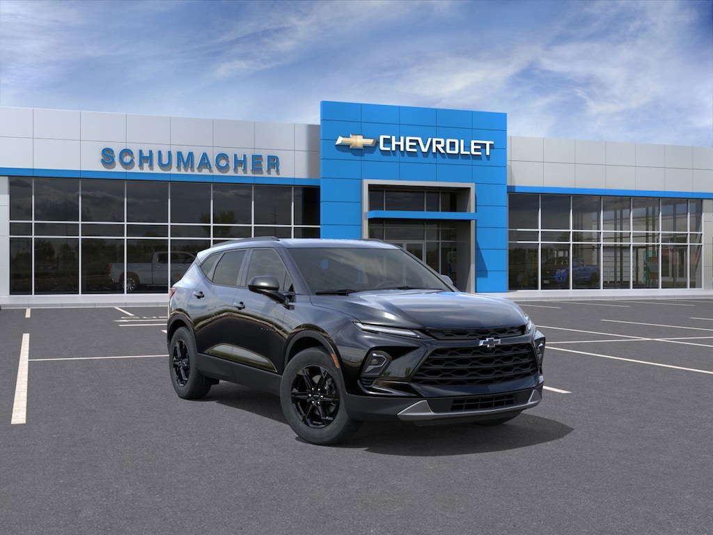 Schumacher Chevrolet Inc. Is pumped up to offer this good-looking 2026 Chevrolet Blazer LT in Black Beautifully equipped with Floor Liner Package (1st and 2nd Row All-Weather Floor Liners and Integrated Cargo Liner), Midnight/Sport Edition (Front and Rear Black Bowties and Wheels: : 18 High Gloss Black Painted Aluminum), Preferred Equipment Group 2LT, 3.47 Final Drive Ratio, 4-Way Manual Front Passenger Seat Adjuster, 4-Wheel Disc Brakes, 6 Speakers, 6-Speaker Audio System Feature, 8-Way Power Driver Seat Adjuster, ABS brakes, Air Conditioning, Alloy wheels, AM/FM radio: SiriusXM with 360L, Apple CarPlay/Android Auto, Auto High-beam Headlights, Automatic temperature control, Black Roof-Mounted Side Rails, Brake assist, Bumpers: body-color, Child-Seat-Sensing Airbag, Compass, Cruise Control, Delay-off headlights, Driver door bin, Driver vanity mirror, Dual front impact airbags, Dual front side impact airbags, Electronic Stability Control, Emergency communication system: OnStar and Chevrolet connected services capable, Four wheel independent suspension, Front anti-roll bar, Front Bucket Seats, Front Center Armrest, Front dual zone A/C, Front reading lights, Fully automatic headlights, Heated door mirrors, Heated Driver and Front Passenger Seats, Heated front seats, Illuminated entry, Knee airbag, Leather Shift Knob, Low tire pressure warning, Occupant sensing airbag, Outside temperature display, Overhead airbag, Overhead console, Panic alarm, Passenger door bin, Passenger vanity mirror, Power door mirrors, Power Driver Lumbar Control, Power driver seat, Power steering, Power windows, Premium audio system: Chevrolet Infotainment 3 Plus, Premium Cloth Seat Trim, Radio data system, Radio: Chevrolet Infotainment 3 Plus System, Rear anti-roll bar, Rear reading lights, Rear seat center armrest, Rear window defroster, Rear window wiper, Remote keyless entry, Ride and Handling Suspension, Security system, SiriusXM with 360L Trial Subscription, Speed-sensing steering, Split folding rear seat, Spoiler, Steering wheel mounted audio controls, Stop-Start Engine Control System, Tachometer, Telescoping steering wheel, Tilt steering wheel, Traction control, Trip computer, Variably intermittent wipers, Voltmeter, Wheels: : 18 Grazen Metallic Aluminum, and Wireless Apple CarPlay/Wireless Android Auto!