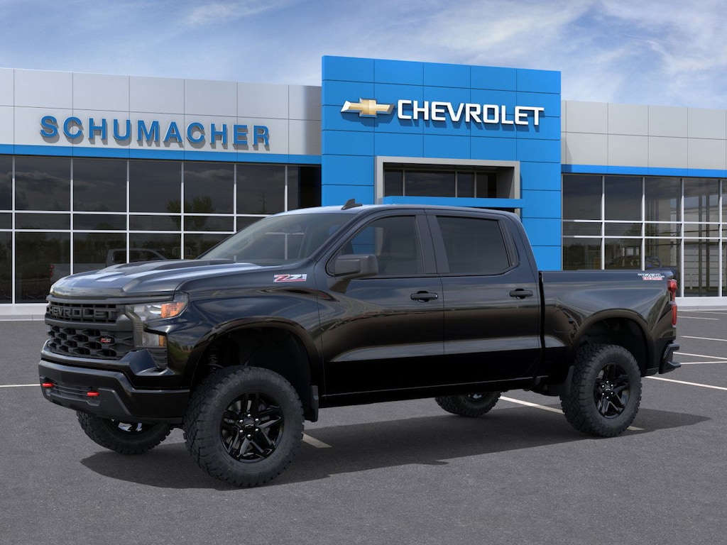 Schumacher Chevrolet Inc. Is delighted to offer this terrific 2026 Chevrolet Silverado 1500 Custom Trail Boss in Black Beautifully equipped with Custom Convenience Package (Electric Rear-Window Defogger, EZ Lift Power Lock and Release Tailgate, LED Cargo Area Lighting, Remote Vehicle Starter System, and Theft Deterrent System (unauthorized Entry)), Preferred Equipment Group 2CX (10-Way Power Driver Seat with Lumbar, 120-Volt Bed Mounted Power Outlet, 120-Volt Interior Power Outlet, 3.5 Monochromatic Display Driver Info Center, 40/20/40 Front Split-Bench Seat, Auto-Locking Rear Differential, Bluetooth® For Phone, Cloth Seat Trim, Color-Keyed Carpeting Floor Covering, Deep-Tinted Glass, Dual Rear USB Ports (charge Only), Electronic Cruise Control, Front Rubberized Vinyl Floor Mats, HD Rear Vision Camera, Manual Tilt Wheel Steering Column, OnStar Services Capable, Performance Red Recovery Hooks, Power Front Windows with Driver Express Up/Down, Power Front Windows with Passenger Express Down, Power Rear Windows with Express Down, Rear 60/40 Folding Bench Seat (folds Up), Rear Rubberized-Vinyl Floor Mats, Remote Keyless Entry, SiriusXM Trial Subscription, Standard Tailgate, Teen Driver, Tire Pressure Monitoring System, Wheels: 18 x 8.5 Black Painted Aluminum, and Wi-Fi Hot Spot Capable), Suspension Package (Heavy-Duty Air Filter and Hill Descent Control), Trailering Package (Hitch Guidance), 170 Amp Alternator, 220 Amp Alternator, 4-Wheel Disc Brakes, 6 Speakers, 6-Speaker Audio System, ABS brakes, Air Conditioning, Alloy wheels, AM/FM radio: SiriusXM, Apple CarPlay/Android Auto, Auto High-beam Headlights, Automatic Emergency Braking, Auxiliary External Transmission Oil Cooler, Brake assist, Chevrolet Infotainment 3 System, Compass, Cruise Control, Delay-off headlights, Deleted Mobile Service Plus, Driver door bin, Driver vanity mirror, Dual Exhaust with Polished Outlets, Dual front impact airbags, Dual front side impact airbags, Electronic Stability Control, Emergency communication system: OnStar, External Engine Oil Cooler, Following Distance Indicator, Forward Collision Alert, Front anti-roll bar, Front Center Armrest w/Storage, Front License Plate Kit, Front Pedestrian Braking, Front reading lights, Front wheel independent suspension, Fully automatic headlights, Heated door mirrors, Illuminated entry, IntelliBeam Automatic High Beam on/Off, Lane Keep Assist with Lane Departure Warning, Low tire pressure warning, Occupant sensing airbag, Outside temperature display, Overhead airbag, Overhead console, Panic alarm, Passenger door bin, Passenger vanity mirror, Power door mirrors, Power driver seat, Power steering, Power windows, Premium audio system: Chevrolet Infotainment 3, Radio data system, Rear reading lights, Rear step bumper, Rear Wheelhouse Liners, Rear window defroster, Remote keyless entry, Security system, Single Outlet Exhaust, Speed-sensing steering, Split folding rear seat, Tachometer, Tilt steering wheel, Traction control, Trip computer, Variably intermittent wipers, and Voltmeter!