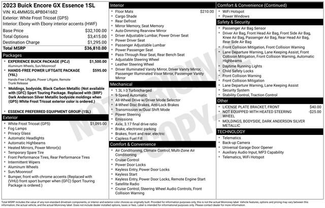 White Frost Tricoat 2023 Buick Encore GX Essence 4D Sport Utility AWD 9-Speed Automatic ECOTEC 1.3L Turbo 26/29 City/Highway MPG