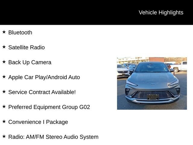 Bluetooth, Satellite Radio, Back Up Camera, Apple Car Play/Android Auto, Service Contract Available!, 2 USB Ports (1 Type-A, 1 Type-C), 2-Way Power Driver Lumbar Control, 8-Way Power Driver Seat Adjuster, ABS brakes, Auto High-beam Headlights, Brake assist, Convenience I Package, Electronic Stability Control, Exterior Parking Camera Rear, Flat-Bottom Wrapped Steering Wheel, Front Bucket Seats, Front Doors Keyless Open, Fully automatic headlights, Heated Driver & Front Passenger Seats, Heated Steering Wheel, Preferred Equipment Group G02, Premium 6-Speaker Audio System Feature, Radio: AM/FM Stereo Audio System, Rear Parking Sensors, Remote keyless entry, Security system, SiriusXM Trial Subscription, Wireless Apple CarPlay/Wireless Android Auto.