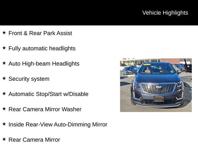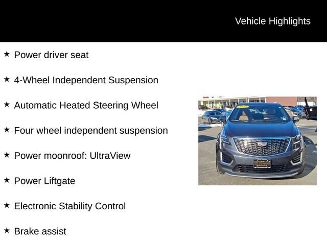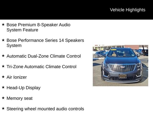 Experience the epitome of luxury and performance with this stunning 2022 Cadillac XT5 Premium Luxury. This meticulously maintained SUV is a true testament to Cadillac's commitment to craftsmanship and innovation, offering an unparalleled driving experience that will captivate you from the moment you take the wheel.Boasting an impressive array of features, this XT5 is equipped to elevate your daily commute and weekend adventures alike. Key highlights include:- Bluetooth, Sunroof Moonroof, Satellite Radio, Leather Seats, Back Up Camera, Blind Spot Monitor, Cross Traffic Alert, Apple Car Play/Android Auto, Heated Seats, Cooled Seats- Tri-Zone Automatic Climate Control, Head-Up Display, Memory Seat, Power Driver Seat, Steering Wheel Mounted Audio Controls, 4-Wheel Independent Suspension, Automatic Heated Steering Wheel, Power Moonroof, Power Liftgate- Bose Performance Series 14 Speakers System, Bose Premium 8-Speaker Audio System, SiriusXM with 360L, Air Ionizer, Automatic Dual-Zone Climate Control, Automatic Emergency Braking, Automatic Parking Assist with Braking, Rear Camera Mirror, Rear Pedestrian AlertPowered by a robust 3.6L V6 engine paired with a smooth 9-speed automatic transmission, this XT5 delivers an exceptional blend of power and efficiency, with an EPA-estimated 18 mpg in the city and 26 mpg on the highway. The all-wheel-drive system ensures confident handling in all driving conditions, while the premium suspension and steering provide a refined and responsive driving experience.The exterior of this XT5 is adorned in a stunning Wilder Metallic Green, further accentuated by the sleek and modern design cues that have become synonymous with the Cadillac brand. Step inside and you'll be greeted by a spacious and luxuriously appointed cabin, featuring premium leather seating, advanced infotainment and technology, and a host of convenience features that will make every journey a pleasure.Whether you're seeking a capable and versatile family hauler or a sophisticated and stylish SUV to elevate your daily commute, this 2022 Cadillac XT5 Premium Luxury is an exceptional choice. Experience the difference that Cadillac craftsmanship and attention to detail can make. Visit our showroom today and let us demonstrate how this remarkable vehicle can enhance your driving experience.
