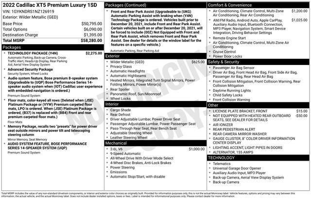 2022 CADILLAC XT5 Premium Luxury SUV AWD