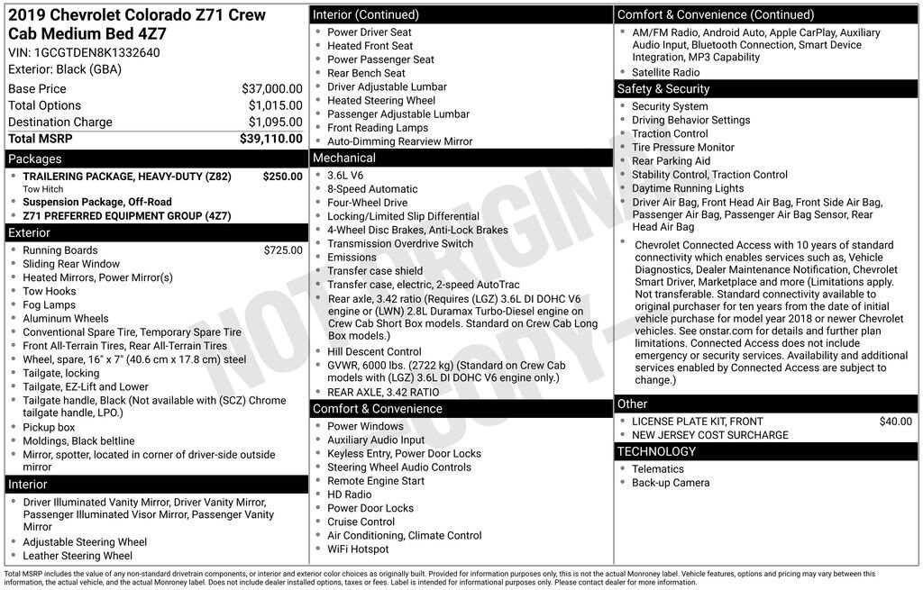 4WD.Black 2019 Chevrolet Colorado Z71 4D Crew Cab 4WD 8-Speed Automatic V6Final price includes all Factory Incentives.