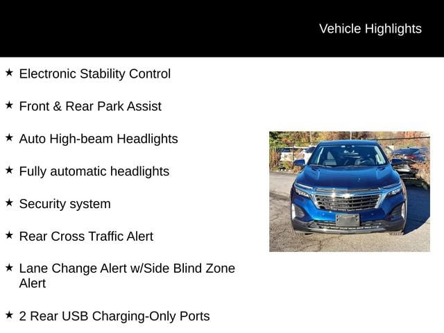 Bluetooth, Satellite Radio, Back Up Camera, Blind Spot Monitor, Cross Traffic Alert, Apple Car Play/Android Auto, Service Contract Available!, Heated Seats, AWD, 2 Rear USB Charging-Only Ports, 2 USB Ports & Auxiliary Input Jack, 4-Wheel Disc Brakes, 6 Speaker Audio System Feature, 8-Way Power Driver Seat Adjuster, ABS brakes, Air Conditioning, Alloy wheels, Auto High-beam Headlights, Bluetooth® For Phone, Brake assist, Confidence & Convenience Package, Driver Confidence II Package, Driver Convenience Package, Electronic Stability Control, Four wheel independent suspension, Front & Rear Park Assist, Fully automatic headlights, Heated Driver & Front Passenger Seats, Lane Change Alert w/Side Blind Zone Alert, Power driver seat, Preferred Equipment Group 1LT, Radio: Chevrolet Infotainment 3 System w/AM/FM, Rear Cross Traffic Alert, Remote Start, Security system, SiriusXM Radio.