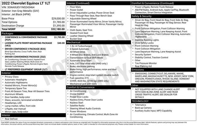 Iron Gray Metallic 2022 Chevrolet Equinox LT 4D Sport Utility AWD 6-Speed Automatic Electronic with Overdrive 1.5L DOHC 25/30 City/Highway MPG