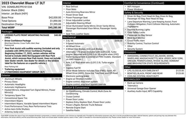 AWD.Black 2023 Chevrolet Blazer LT 4D Sport Utility AWD 9-Speed Automatic with Overdrive 3.6L V6 SIDI 19/26 City/Highway MPG