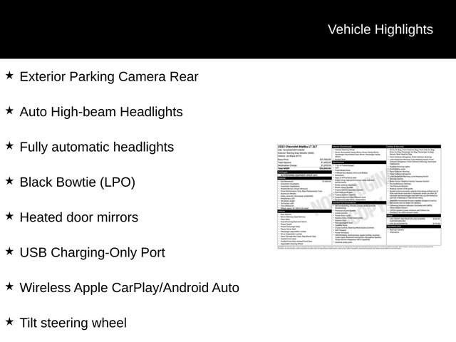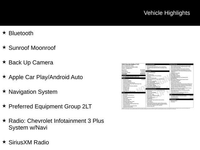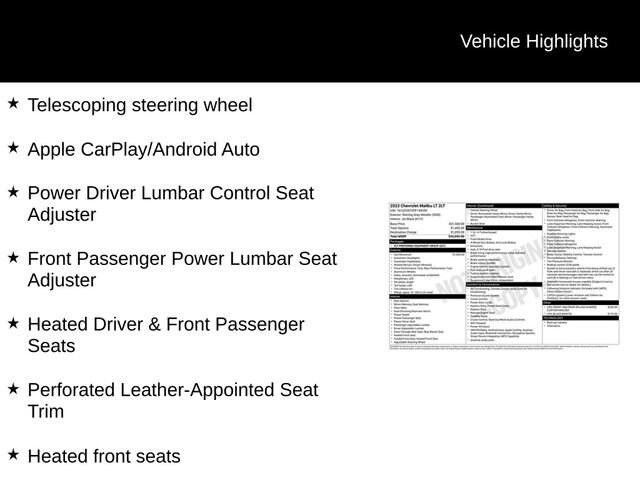 This 2023 Chevrolet Malibu LT 2LT is a true standout in its class, offering a winning combination of style, technology, and performance. Experience the difference for yourself by scheduling a test drive today. We're confident you'll be impressed by this exceptional vehicle.