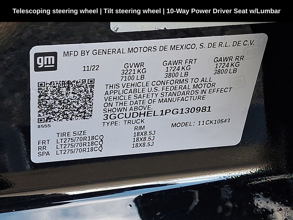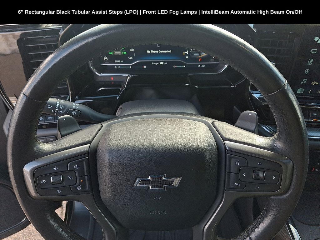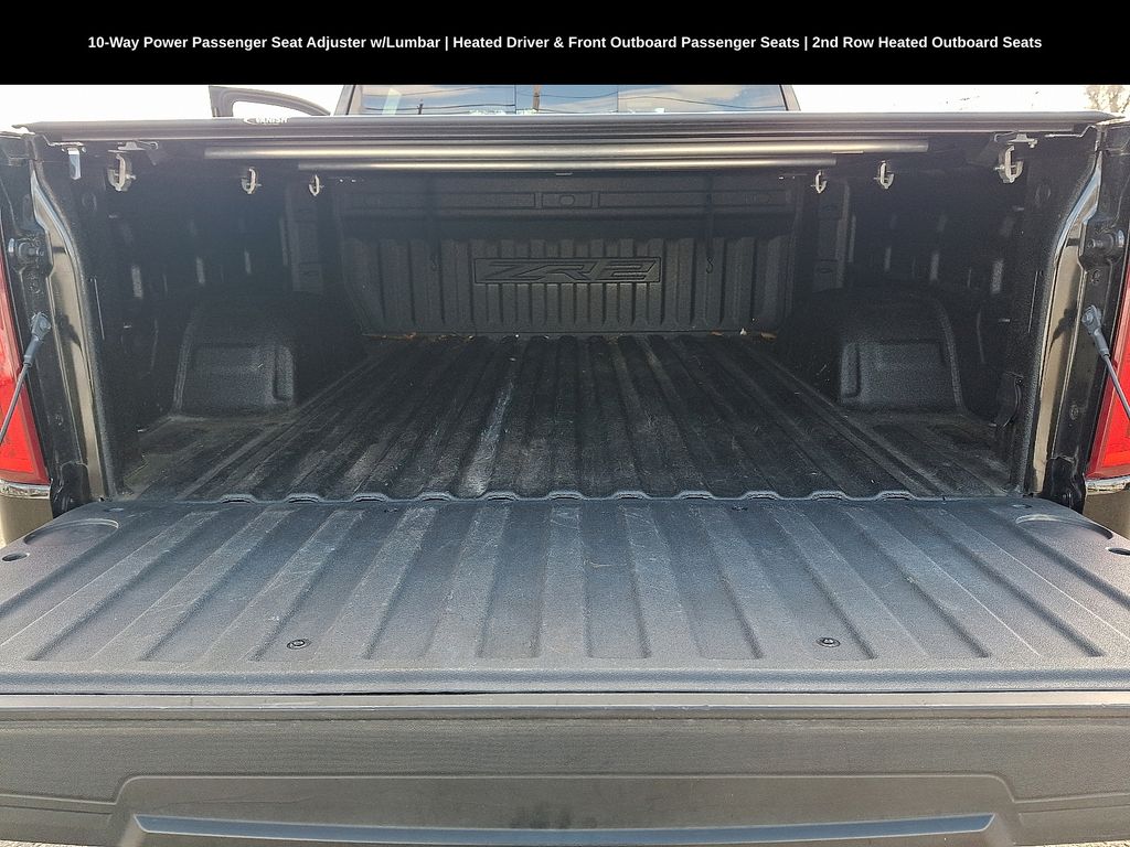 10-Way Power Driver Seat w/Lumbar, 10-Way Power Passenger Seat Adjuster w/Lumbar, 12.3" Multicolor Reconfigurable Digital Display, 120-Volt Instrument Panel Power Outlet, 15" Diagonal Multicolor Head-Up Display, 170 Amp Alternator, 2 USB Data Ports, 2nd Row Heated Outboard Seats, 6" Rectangular Black Tubular Assist Steps (LPO), Adaptive Cruise Control, All-Weather Floor Liner (LPO), Auto-Dimming Inside Rear-View Mirror, Auto-Locking Rear Differential, Automatic temperature control, Bed View Camera, Bluetooth® For Phone, Chevytec Spray-On Black Bedliner, Color-Keyed Carpeting Floor Covering, Compass, Deep-Tinted Glass, Driver Memory, Dual Exhaust, Dual Rear USB Ports (Charge Only), Electric Rear-Window Defogger, Electrical Steering Column Lock, Electronic Cruise Control, EZ Lift Power Lock & Release Tailgate, Floor Mounted Center Console, Front fog lights, Front LED Fog Lamps, Front Rainsensing Wipers, HD Surround Vision, Heated door mirrors, Heated Driver & Front Outboard Passenger Seats, Heated front seats, Heated Steering Wheel, Heavy-Duty Air Filter, High Gloss Black Mirror Caps, Hill Descent Control, Hitch Guidance, Hitch Guidance w/Hitch View, Integrated Trailer Brake Controller, IntelliBeam Automatic High Beam On/Off, Keyless Open & Start, Lane Keep Assist w/Lane Departure Warning, LED Cargo Area Lighting, Low tire pressure warning, Manual Tilt/Telescoping Steering Column, Memory seat, OnStar & Chevrolet Connected Services Capable, Outside Heated Power-Adjustable Mirrors, Performance Red Recovery Hooks, Perimeter Lighting, Power door mirrors, Power driver seat, Power Front Passenger Windows w/Express Up/Down, Power Front Windows w/Driver Express Up/Down, Power Rear Windows w/Express Down, Power Sliding Rear Window w/Rear Defogger, Power Sunroof, Power Tilt & Telescoping Steering Column, Power windows, Preferred Equipment Group 3LT, Premium Bose 7-Speaker Sound System, Radio: Chevrolet Infotainment 3 Premium System, Rear Camera Mirror, Rear Cross Traffic Alert-Braking, Rear Park Assist, Rear Parking Sensors, Rear Pedestrian Alert, Rear Wheelhouse Liners, Remote keyless entry, Remote Vehicle Starter System, Safety Alert Seat, Security system, SiriusXM w/360L, Speed control, Standard Tailgate, Steering Wheel Audio Controls, Steering wheel mounted audio controls, Technology Package, Telescoping steering wheel, Theft Deterrent System (Unauthorized Entry), Tilt steering wheel, Traction control, Trailer Camera Provisions, Trailer Side Blind Zone Alert, Trailering App, Trailering Package, Universal Home Remote, Up-Level Rear Seat w/Storage Package, Ventilated Driver & Front Passenger Seats, Wheels: 18" x 8.5" Gloss Black, Wi-Fi Hot Spot Capable, Wireless Charging, Wireless Phone Projection, Wrapped Steering Wheel, ZR2 Suspension Package.