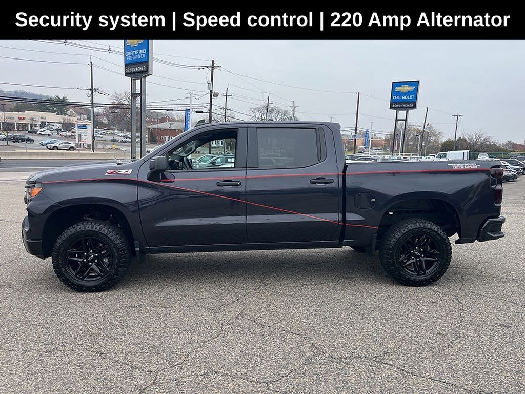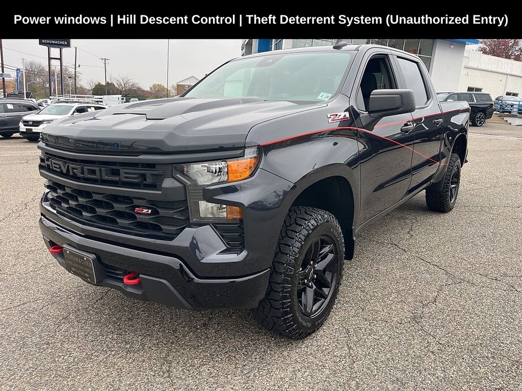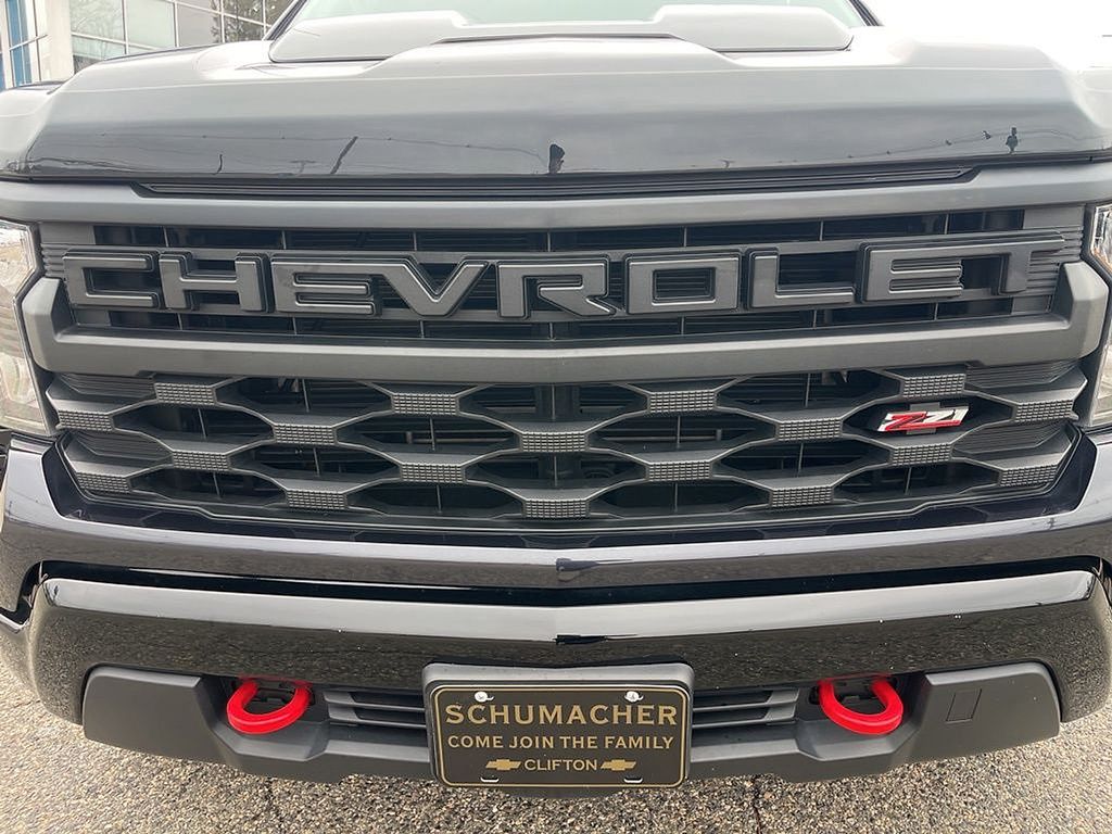 Schumacher Chevrolet of Clifton is delighted to offer this terrific 2023 Chevrolet Silverado 1500 Custom Trail Boss in Dark Ash Metallic Beautifully equipped with Custom Convenience Package (EZ Lift Power Lock & Release Tailgate, Remote Vehicle Starter System, Theft Deterrent System (Unauthorized Entry), Electric Rear-Window Defogger, and LED Cargo Area Lighting), Preferred Equipment Group 2CX (10-Way Power Driver Seat w/Lumbar, Bluetooth® For Phone, SiriusXM Radio, Wi-Fi Hot Spot Capable, Wireless Phone Projection, 120-Volt Bed Mounted Power Outlet, 120-Volt Instrument Panel Power Outlet, 3.5" Monochromatic Display Driver Info Center, Auto-Locking Rear Differential, Chevrolet Connected Access Capable, Color-Keyed Carpeting Floor Covering, Compass, Deep-Tinted Glass, Dual Rear USB Ports (Charge Only), Electrical Steering Column Lock, Electronic Cruise Control, Front Rubberized Vinyl Floor Mats, HD Rear Vision Camera, Manual Tilt Wheel Steering Column, OnStar & Chevrolet Connected Services Capable, Performance Red Recovery Hooks, Power Front Windows w/Driver Express Up/Down, Power Front Windows w/Passenger Express Down, Power Rear Windows w/Express Down, Rear 60/40 Folding Bench Seat (Folds Up), Rear Rubberized-Vinyl Floor Mats, Remote Keyless Entry, and Standard Tailgate), Suspension Package (Hill Descent Control and Heavy-Duty Air Filter), Trailering Package (Hitch Guidance), 220 Amp Alternator, Apple CarPlay/Android Auto, Heated door mirrors, Lane Keep Assist w/Lane Departure Warning, Power windows, Remote keyless entry, Security system, Speed control, Wheels: 18" x 8.5" Black Painted Aluminum, 3.42 Rear Axle Ratio, 4-Wheel Disc Brakes, 40/20/40 Front Split-Bench Seat, 6 Speakers, 6-Speaker Audio System, ABS brakes, Air Conditioning, Alloy wheels, AM/FM radio: SiriusXM, Auto High-beam Headlights, Automatic Emergency Braking, Brake assist, Cloth Seat Trim, Delay-off headlights, Driver door bin, Driver vanity mirror, Dual front impact airbags, Dual front side impact airbags, Electronic Stability Control, Following Distance Indicator, Forward Collision Alert, Front anti-roll bar, Front Center Armrest w/Storage, Front License Plate Kit, Front Pedestrian Braking, Front reading lights, Front wheel independent suspension, Fully automatic headlights, Illuminated entry, IntelliBeam Automatic High Beam On/Off, Low tire pressure warning, Multi-Flex Tailgate, Not Equipped w/Rear USB Ports, Not Equipped w/Steering Column Lock, Occupant sensing airbag, Outside temperature display, Overhead airbag, Overhead console, Panic alarm, Passenger door bin, Passenger vanity mirror, Power door mirrors, Power driver seat, Power steering, Premium audio system: Chevrolet Infotainment 3, Radio data system, Radio: Chevrolet Infotainment 3 System, Rear reading lights, Rear step bumper, Rear window defroster, Speed-sensing steering, Split folding rear seat, Tachometer, Tilt steering wheel, Traction control, Trip computer, Variably intermittent wipers, and Voltmeter!