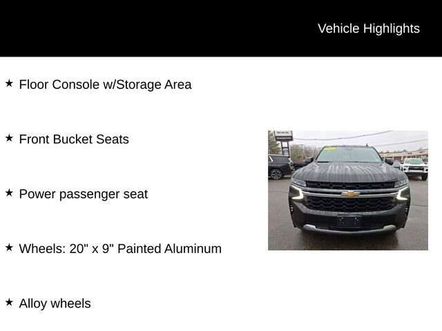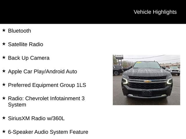 The Tahoe LS boasts a striking exterior in a sleek Black color, complemented by the 20-inch painted aluminum wheels that give it a bold, commanding presence on the road. Inside, the premium cloth seating and intuitive Chevrolet Infotainment 3 system with Apple CarPlay and Android Auto integration ensure both comfort and connectivity for you and your passengers.