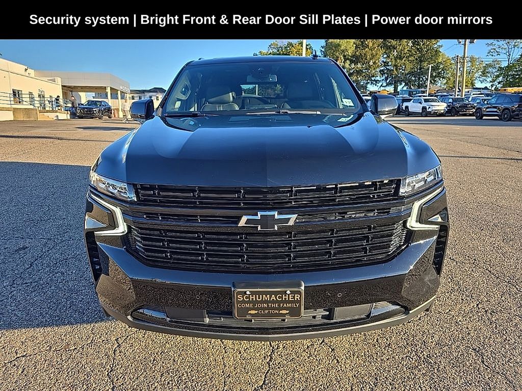 Schumacher Chevrolet of Clifton is delighted to offer this good-looking 2023 Chevrolet Tahoe RST in Black Beautifully equipped with Preferred Equipment Group 1SP (1st & 2nd Row Color-Keyed Carpeted Floor Mats, Auto-Dimming Inside Rear-View Mirror, Bose 9-Speaker Stereo Audio System Feature, Bright Front & Rear Door Sill Plates, Color-Keyed Carpeting Floor Covering, Driver & Front Outboard Passenger Airbags, Enhanced Driver Information Center, Floor Console w/Storage Area, Hands-Free Rear Power Programmable Liftgate, Infotainment Display, LED Daytime Running Lamps, Memory Settings for Driver, Remote Start, SiriusXM Radio w/360L, Universal Home Remote, Wireless Charging, and Wrapped Steering Wheel), License Plate Front Mounting Package, 10-Way Power Driver & Passenger Seat Adjusters, 3rd row seats: split-bench, Apple CarPlay/Android Auto, Bumpers: body-color, Dual-Pane Power Panoramic Sunroof, Garage door transmitter, Heated door mirrors, Heated Driver & Front Passenger Seats, Low tire pressure warning, Navigation System, Power door mirrors, Power Liftgate, Power passenger seat, Power windows, Premium Smooth Ride Suspension, Rain sensing wipers, Remote keyless entry, Security system, Set of 4 Wheel Locks (LPO), Steering wheel mounted audio controls, Telescoping steering wheel, Tilt steering wheel, Wheels: 22" x 9" Bright Machined, 3.23 Rear Axle Ratio, 4-Wheel Disc Brakes, 9 Speakers, ABS brakes, Air Conditioning, Alloy wheels, AM/FM radio: SiriusXM with 360L, Auto High-beam Headlights, Auto-dimming Rear-View mirror, Automatic temperature control, Brake assist, Compass, Delay-off headlights, Driver door bin, Driver vanity mirror, Dual front impact airbags, Dual front side impact airbags, Electronic Stability Control, Emergency communication system: OnStar and Chevrolet connected services capable, Four wheel independent suspension, Front anti-roll bar, Front Bucket Seats, Front Center Armrest, Front dual zone A/C, Front High-Back Reclining Bucket Seats, Front reading lights, Fully automatic headlights, Heated front seats, Illuminated entry, Memory seat, Occupant sensing airbag, Outside temperature display, Overhead airbag, Overhead console, Panic alarm, Passenger door bin, Passenger vanity mirror, Perforated Leather Seat Trim, Power driver seat, Power steering, Premium audio system: Chevrolet Infotainment 3 Premium, Radio: Chevrolet Infotainment 3 Premium System, Rear air conditioning, Rear anti-roll bar, Rear reading lights, Rear seat center armrest, Rear window defroster, Rear window wiper, Roof rack: rails only, Speed control, Speed-sensing steering, Split folding rear seat, Spoiler, Tachometer, Traction control, Trip computer, Variably intermittent wipers, and Voltmeter!