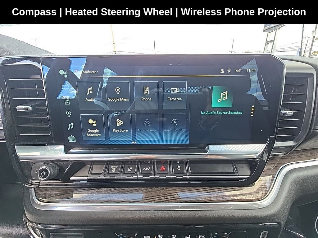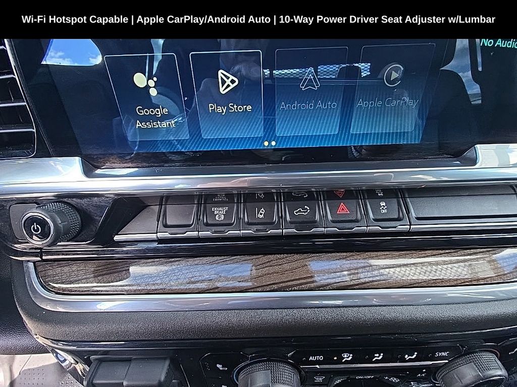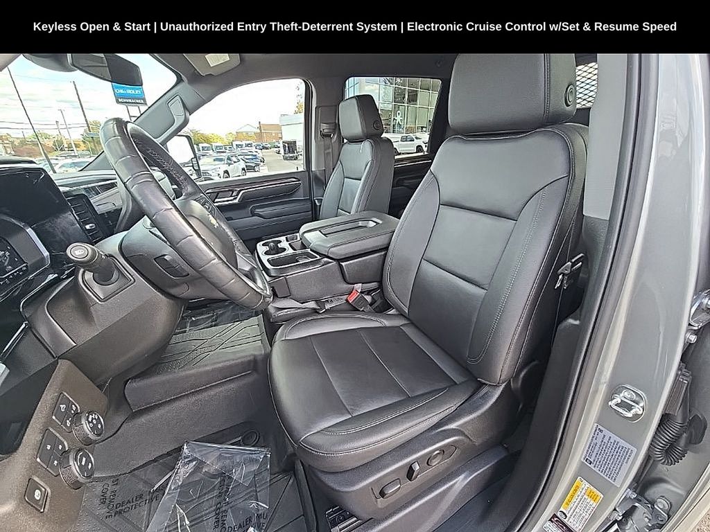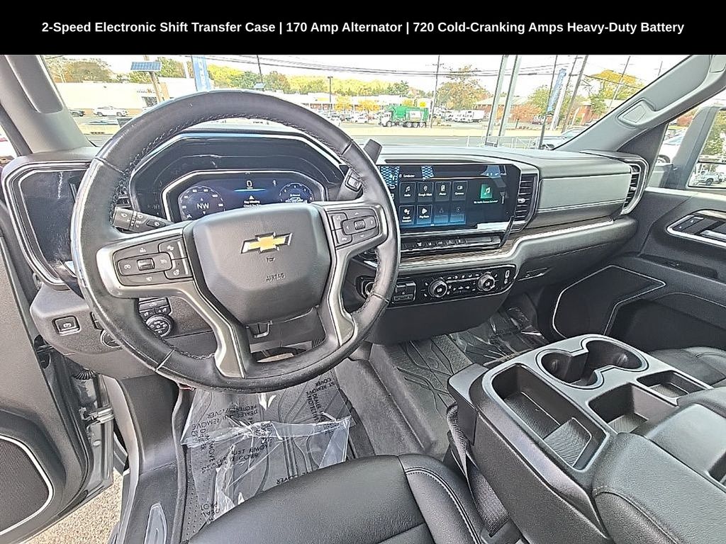 10-Way Power Driver Seat Adjuster w/Lumbar, 120-Volt Bed Mounted Power Outlet, 120-Volt Interior Power Outlet, 120-Volt Interior Power Outlet (DISC), 170 Amp Alternator, 2-Speed Electronic Shift Transfer Case, 4-Way Manual Driver Seat Adjuster, 6-Speaker Audio System, 6" Rectangular Chromed Tubular Assist Steps (LPO), 720 Cold-Cranking Amps Heavy-Duty Battery, Apple CarPlay/Android Auto, Black Chevytec Spray-On Bedliner, Black Mirror Caps, Bluetooth® For Phone, Chevrolet Connected Access Capable, Cloth Rear Seat w/Storage Package, Color-Keyed Carpeting Floor Covering, Compass, Convenience Package, Convenience Package II, Deep-Tinted Glass, Dual Rear USB Ports (Charge Only), Dual-Zone Automatic Climate Control, Electric Rear-Window Defogger, Electronic Cruise Control w/Set & Resume Speed, EZ Lift Power Lock & Release Tailgate, Front LED Fog Lamps, Front Rubberized Vinyl Floor Mats, Gooseneck/5th Wheel Prep Package, Halogen Reflector Headlamps, HD Rear Vision Camera, Heat Package, Heated door mirrors, Heated Driver & Front Outboard Passenger Seating, Heated Steering Wheel, Heated Vertical Trailering Mirrors, Hitch Guidance w/Hitch View, In-Vehicle Trailering App System, Keyless Open & Start, Leather Package, LED Cargo Area Lighting, Manual Tilt & Telescoping Steering Column, Manual Tilt-Wheel Steering Column, OnStar & Chevrolet Connected Services Capable, Power Door Locks, Power door mirrors, Power Front Windows w/Driver Express Up/Down, Power Front Windows w/Passenger Express Down, Power Rear Windows w/Express Down, Power Sliding Rear Window w/Defogger, Power windows, Preferred Equipment Group 1LT, Premium audio system: Chevrolet Infotainment 3 Premium, Push Button Start, Pwr Up/Down Tailgate Function w/Pwr Lock & Release, Radio: Chevrolet Infotainment 3 Premium System, Rear 60/40 Folding Bench Seat (Folds Up), Rear Rubberized Vinyl Floor Mats, Remote keyless entry, Remote Start Package, Remote Vehicle Starter System, SiriusXM w/360L, Standard Tailgate, Steering Wheel Audio Controls, Steering wheel mounted audio controls, Suspension Package, Turn signal indicator mirrors, Unauthorized Entry Theft-Deterrent System, Universal Home Remote, Up-Level Rear Seat w/Storage Package, Wheels: 18" Machined Alum w/Silver Painted Accents, Wi-Fi Hotspot Capable, Wireless Phone Projection, Wrapped Steering Wheel.