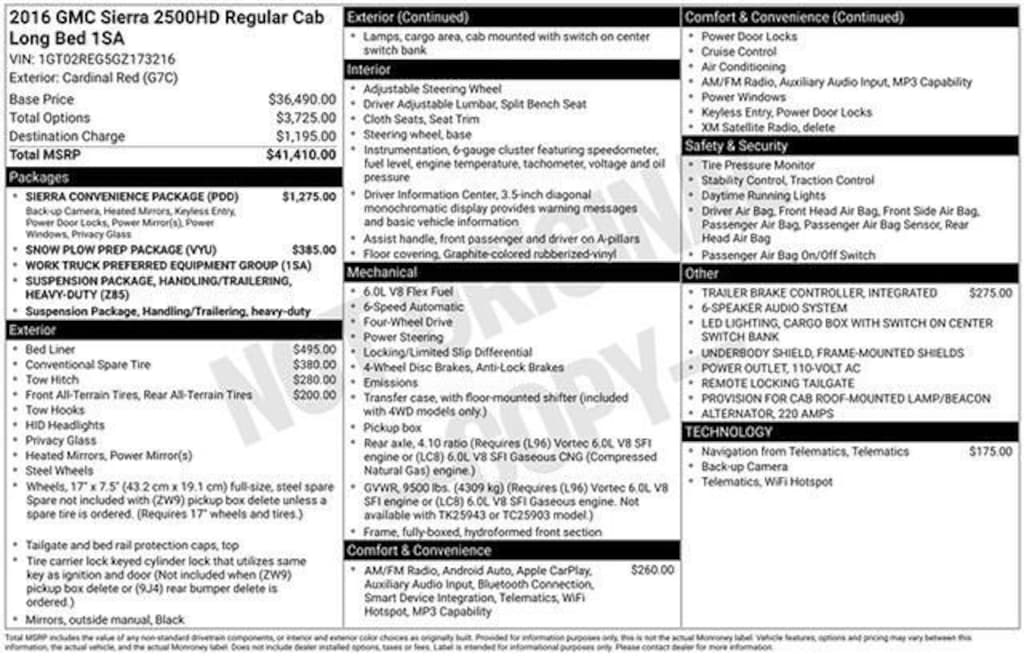 Used 2016 GMCSierra 2500 HD Truck Regular Cab 4x4