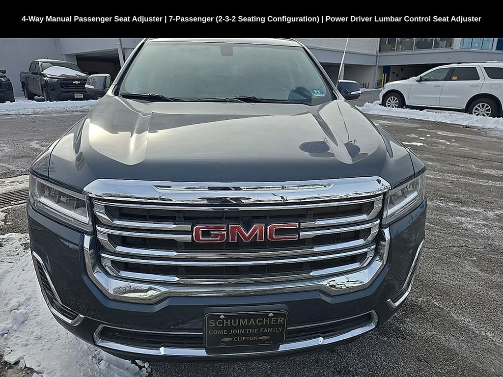 Schumacher Chevrolet of Clifton is delighted to offer this beautiful-looking 2020 GMC Acadia SLE in Dark Sky Metallic Beautifully equipped with Driver Convenience Package (120-Volt Power Outlet, 8-Way Power Driver Seat Adjuster, Brushed Aluminum Roof Rails, Hands Free Power Programmable Liftgate, Heated Driver & Front Passenger Seats, Power Driver Lumbar Control Seat Adjuster, and Remote Start), Preferred Equipment Group 3SA, 155 Amp Alternator, 4-Way Manual Driver Seat Adjuster, 4-Way Manual Passenger Seat Adjuster, 6-Speaker Audio System Feature, 7-Passenger (2-3-2 Seating Configuration), Alloy wheels, Apple CarPlay/Android Auto, Automatic temperature control, Heated door mirrors, Power steering, Power windows, Premium audio system: GMC Infotainment System, Radio: AM/FM w/8" Diagonal Multi-Touch Display, Remote keyless entry, SiriusXM Radio, Speed control, Steering wheel mounted audio controls, Telescoping steering wheel, Wheels: 18" Machined Aluminum w/Dark Accents, 3rd row seats: split-bench, 4-Wheel Disc Brakes, 6 Speakers, 6-Passenger (2-2-2 Seating Configuration), ABS brakes, Air Conditioning, AM/FM radio: SiriusXM, Brake assist, Bumpers: body-color, Compass, Delay-off headlights, Driver door bin, Driver vanity mirror, Dual front impact airbags, Dual front side impact airbags, Electronic Stability Control, Emergency communication system: OnStar and GMC connected services capable, Four wheel independent suspension, Front anti-roll bar, Front Bucket Seats, Front Center Armrest, Front dual zone A/C, Front License Plate Bracket, Front reading lights, Fully automatic headlights, Illuminated entry, Knee airbag, Low tire pressure warning, Occupant sensing airbag, Outside temperature display, Overhead airbag, Overhead console, Panic alarm, Passenger door bin, Passenger vanity mirror, Power door mirrors, Premium Cloth Seat Trim, Radio data system, Rear air conditioning, Rear anti-roll bar, Rear reading lights, Rear seat center armrest, Rear window defroster, Rear window wiper, Security system, Speed-sensing steering, Split folding rear seat, Spoiler, Tachometer, Tilt steering wheel, Traction control, Trip computer, Turn signal indicator mirrors, Variably intermittent wipers, and Voltmeter!