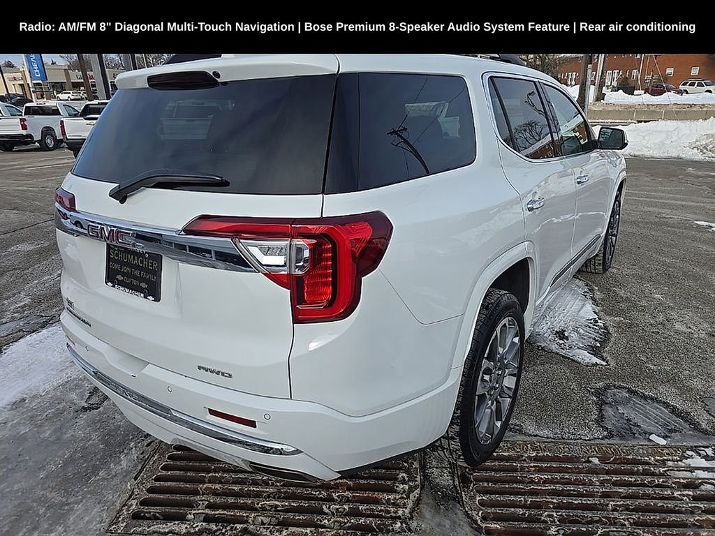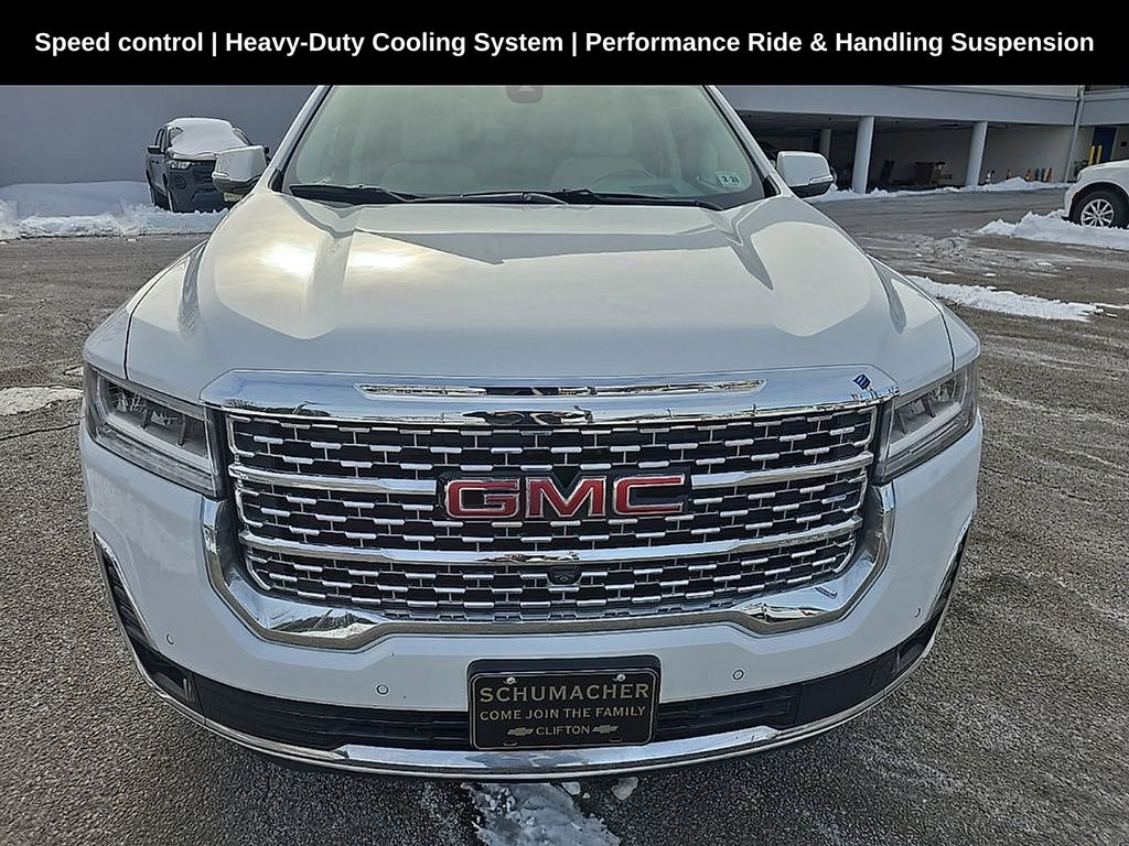 Schumacher Chevrolet of Clifton is proud to offer this superb-looking 2023 GMC Acadia Denali in Summit White Beautifully equipped with Denali Technology Package (Adaptive Cruise Control, Enhanced Automatic Emergency Braking, HD Surround Vision, Rear Camera Mirror, and Rear Camera Mirror Washer), Denali Ultimate Package (Adaptive Ride Control, Dual SkyScape 2-Panel Power Sunroof, and Performance Ride & Handling Suspension), Preferred Equipment Group 5SA, Trailering Package (Heavy-Duty Cooling System, Hitch Guidance w/Hitch View, and Trailering Assist Guidelines), 20" Ultra Bright Machined Aluminum Wheels, 3.49 Final Drive Axle Ratio, 7-Passenger (2-3-2 Seating Configuration), 8-Way Power Passenger Seat Adjuster, Apple CarPlay/Android Auto, Automatic temperature control, Bose Premium 8-Speaker Audio System Feature, Fully automatic headlights, Heated & Ventilated Driver & Front Passenger Seats, Heated door mirrors, Heated steering wheel, Navigation System, Power driver seat, Power Liftgate, Power passenger seat, Power windows, Radio: AM/FM 8" Diagonal Multi-Touch Navigation, Rear air conditioning, Remote keyless entry, Security system, SiriusXM w/360L, Speed control, Steering wheel memory, Steering wheel mounted audio controls, Telescoping steering wheel, Wireless Apple CarPlay/Wireless Android Auto, 170 Amp Alternator, 3rd row seats: split-bench, 4-Wheel Disc Brakes, 6-Passenger (2-2-2 Seating Configuration), 8 Speakers, 8-Way Power Driver Seat Adjuster, ABS brakes, Air Conditioning, Alloy wheels, AM/FM radio: SiriusXM with 360L, Auto High-beam Headlights, Auto-dimming door mirrors, Auto-dimming Rear-View mirror, Brake assist, Bumpers: body-color, Compass, Delay-off headlights, Driver door bin, Driver vanity mirror, Dual front impact airbags, Dual front side impact airbags, Electronic Stability Control, Emergency communication system: OnStar and GMC connected services capable, Four wheel independent suspension, Front anti-roll bar, Front Bucket Seats, Front Center Armrest, Front dual zone A/C, Front fog lights, Front License Plate Bracket, Front reading lights, Garage door transmitter, Heads-Up Display, Heated Driver & Front Passenger Seats, Heated front seats, Heated Rear Outboard Seating Positions, Heated rear seats, Illuminated entry, Knee airbag, Low tire pressure warning, Memory seat, Occupant sensing airbag, Outside temperature display, Overhead airbag, Overhead console, Panic alarm, Passenger door bin, Passenger vanity mirror, Perforated Leather-Appointed Seat Trim, Power door mirrors, Power Driver Lumbar Control Seat Adjuster, Power Passenger Lumbar Control Seat Adjuster, Power steering, Radio data system, Rear anti-roll bar, Rear reading lights, Rear window defroster, Rear window wiper, Roof rack: rails only, Speed-sensing steering, Spoiler, Tachometer, Tilt steering wheel, Traction control, Trip computer, Turn signal indicator mirrors, Variably inte