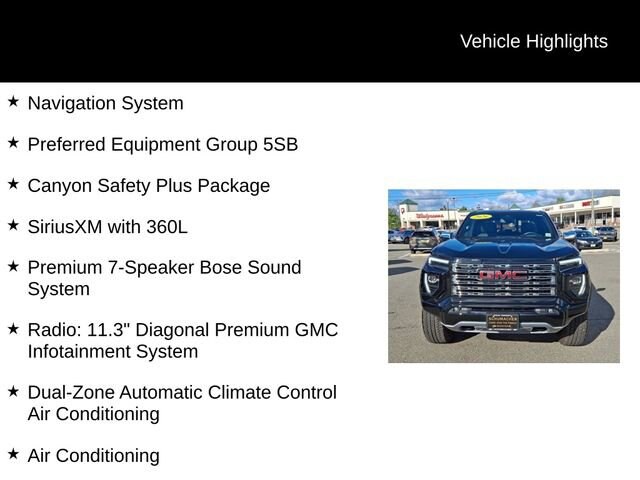 The Canyon Denali's off-road capabilities are equally impressive, thanks to its rugged suspension and available 4WD system. Whether tackling the daily commute or venturing off the beaten path, this truck is ready to handle it all with ease.