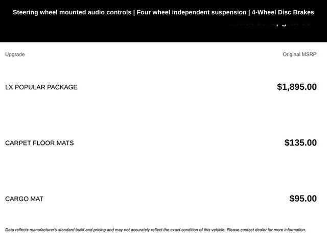 - LX Popular Package: Includes Power Folding Outside Mirrors with LED Turn Signals, Dual Zone Climate Control, Rear Cross-Traffic Collision Warning, Heated Front Seats, and more