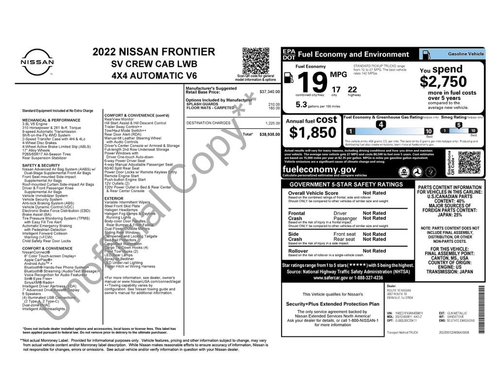2022 Nissan Frontier SV Truck Crew Cab 4x4