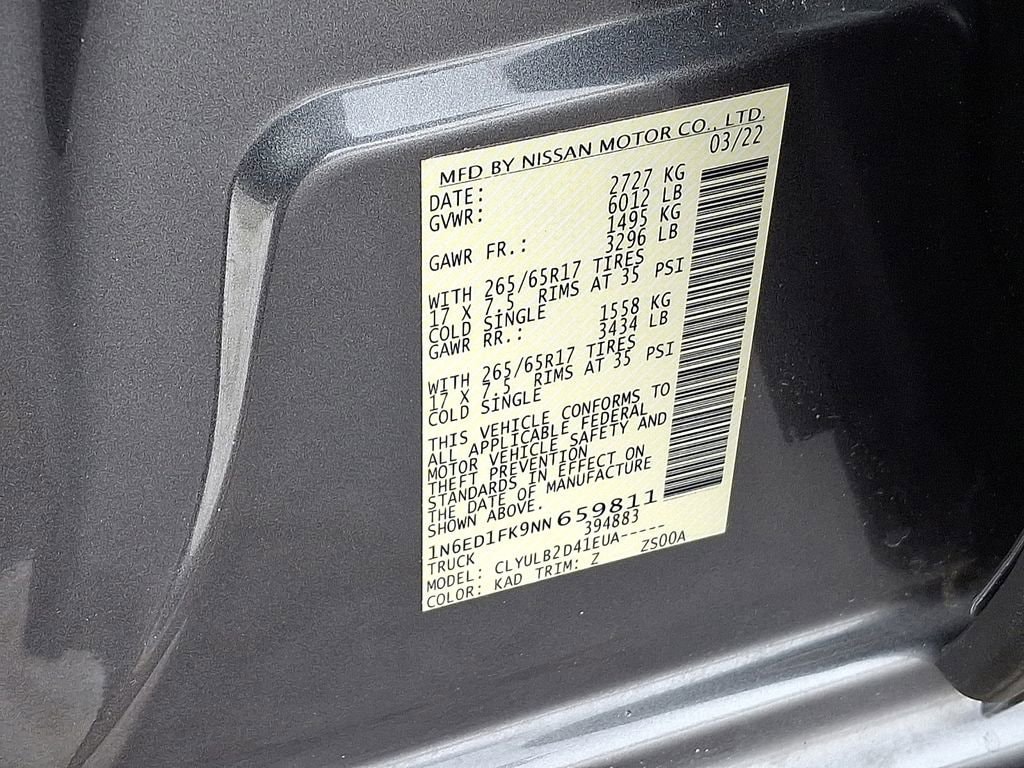 Gun Metallic 2022 Nissan Frontier SV 4D Crew Cab 4WD 9-Speed Automatic 3.8L DI DOHC 24V V6