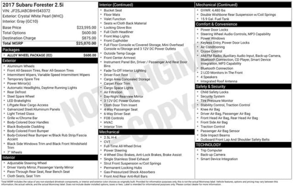 Price(s) include all costs to be paid by consumer, except for licensing costs, registration fees and taxes. Dealer is not responsible for typographical or pricing errors. Additional $399 doc fee due at time of sale. Although every reasonable effort has been made to ensure the accuracy of the information contained on this site, absolute accuracy cannot be guaranteed. This site, and all information and materials appearing on it, are presented to the user "as is" without warranty of any kind, either express or implied, including but not limited to the implied warranties of merchantability, fitness for a particular purpose, title or non-infringement. All vehicles are subject to prior sale. MPG estimates on this website are EPA estimates; your actual mileage may vary. For used vehicles, MPG estimates are EPA estimates for the vehicle when it was new. The EPA periodically modifies its MPG calculation methodology; all MPG estimates are based on the methodology in effect when the vehicles were new (please see the "Fuel Economy" portion of the EPA's website for details, including a MPG recalculation tool). Not available with special finance, lease and some other offers. Prices do not include additional fees and costs of closing, including government fees and taxes, any finance charges, any dealer documentation fees, any emissions testing fees or other fees. All prices, specifications and availability subject to change without notice.